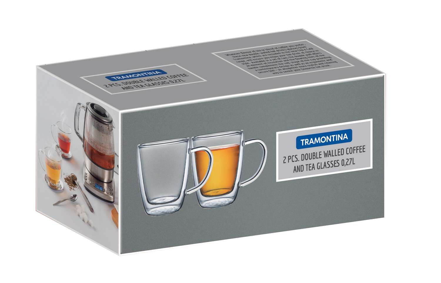 Tramontina 2 Pcs. Double Walled Coffee and Tea Cups with Handles (270ml)