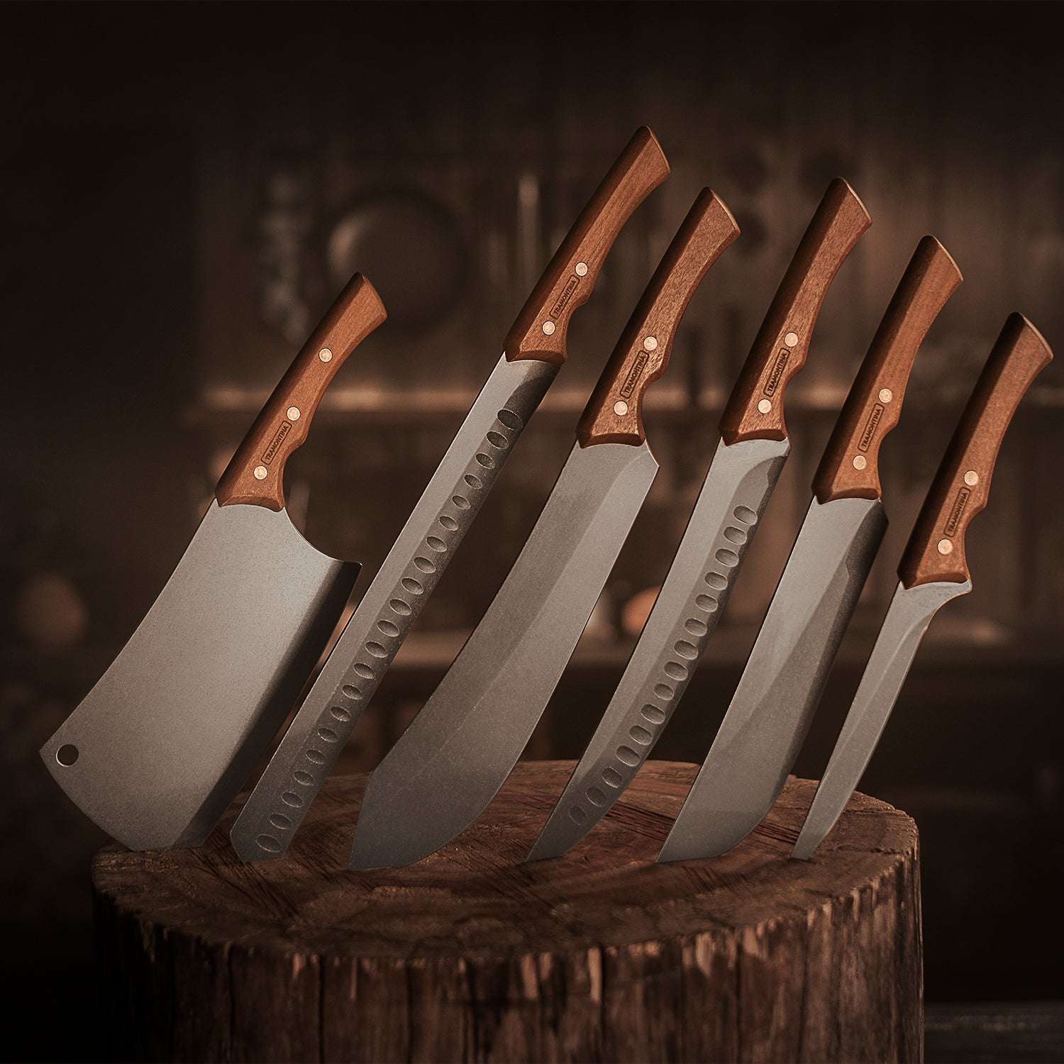- Blackened stainless steel blade and rivets